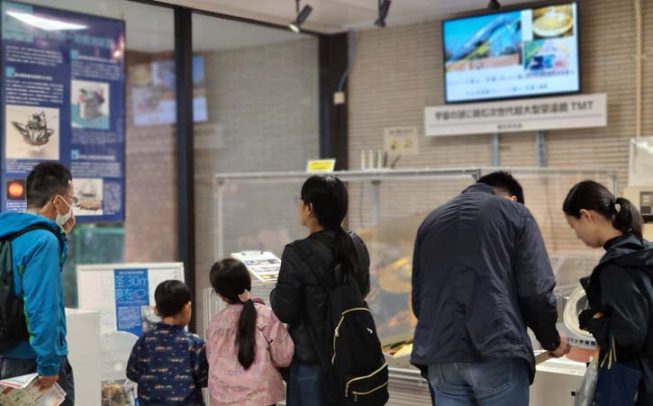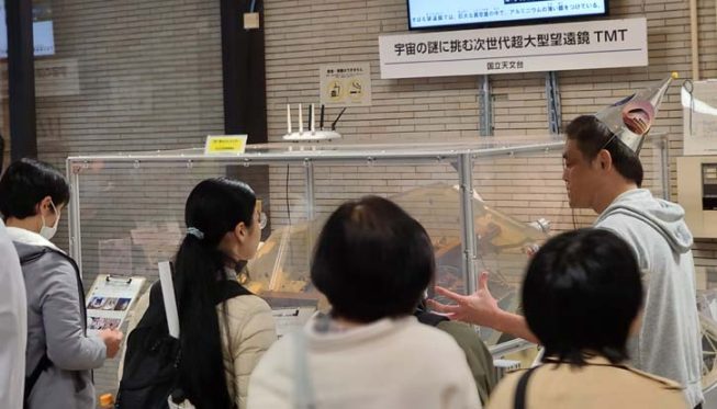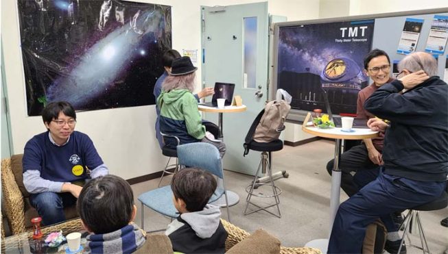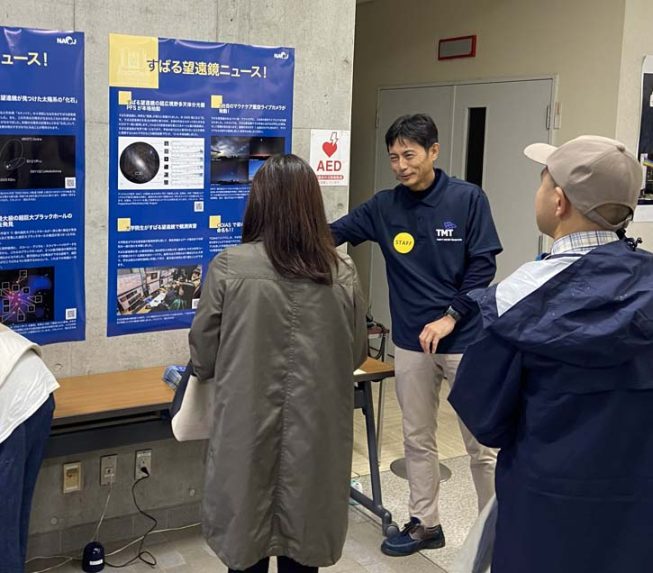 すばる棟では、ハワイ観測所とTMTプロジェクトが合同で多彩な企画を展開しました。TMTプロジェクトのスタッフも各企画に積極的に参加し、訪れた方々と直接対話しながらすばる望遠鏡やTMTについて紹介しました。来場者からの質問に答えたり、研究や開発の様子を伝えたりと、スタッフ自身も交流を楽しむ充実した時間となりました。